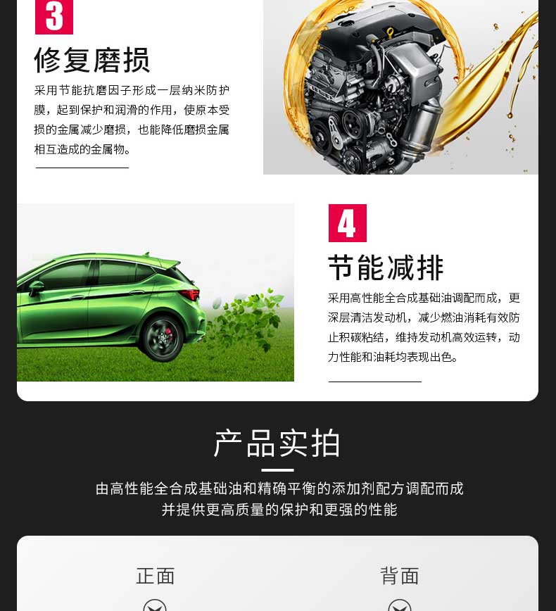 采用节能抗磨因子形成一层纳米防护膜,减少发动机磨损,降低燃油消耗。