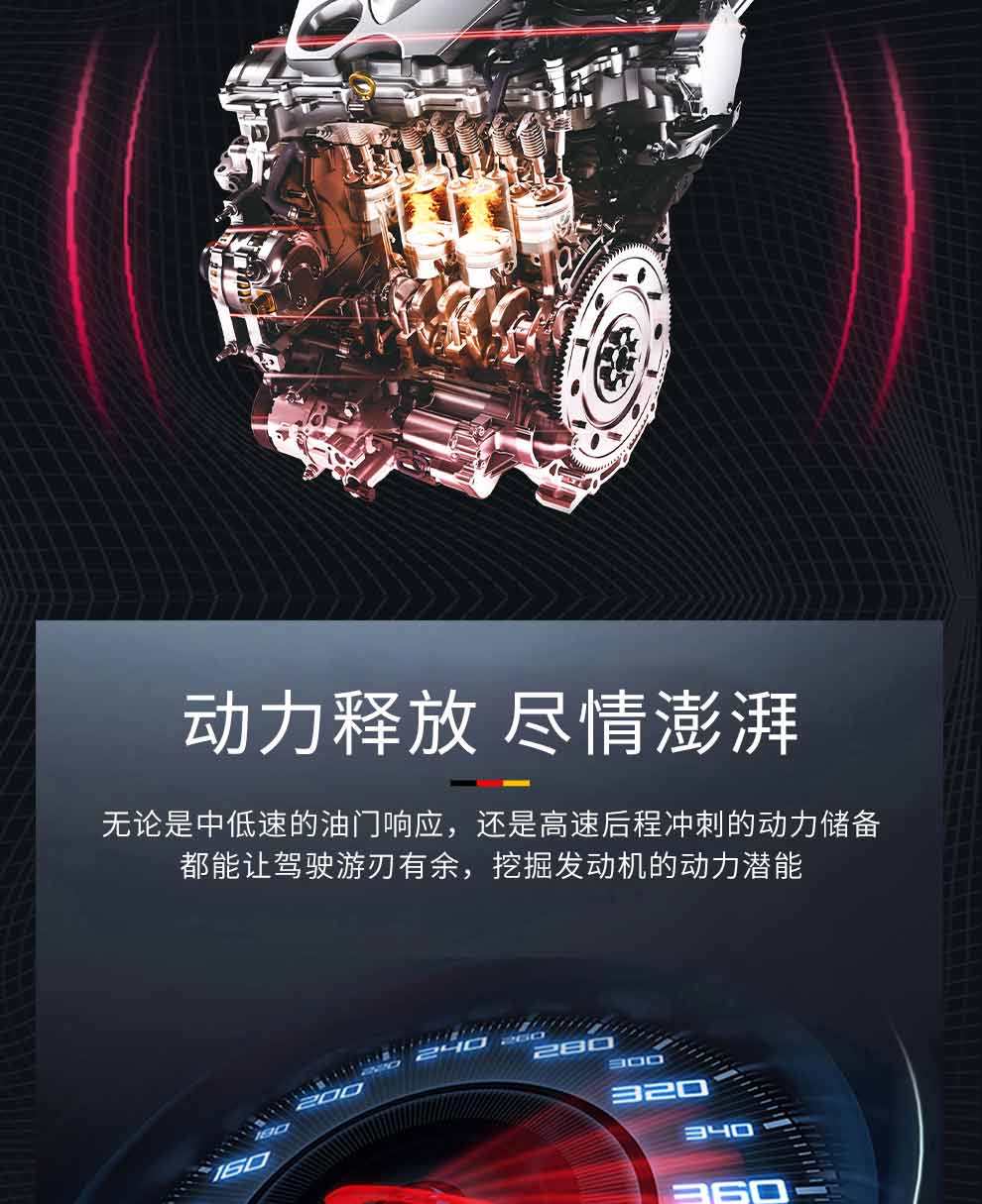有效控制涡轮增压缸内直喷发动机产生低速早燃现象,同时可针对性保护涡轮增压器,抑制机油在涡轮增压器内的结焦或沉积物生成,避免涡轮增压器温度过高以及轴承故障。